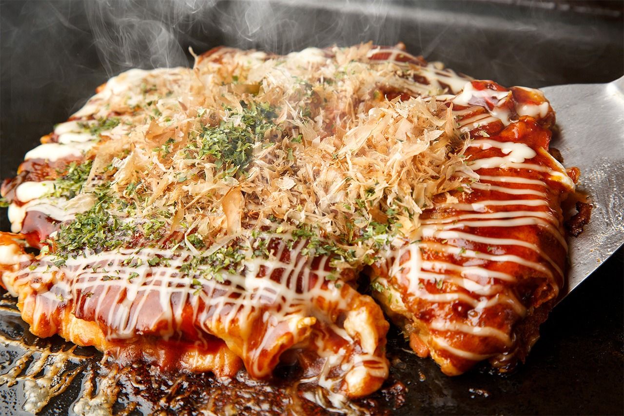 El okonomiyaki es un plato adorado por la gente de Osaka. A pesar de llevar harina, hay quienes incluso lo acompañan con un tazón de arroz.ç