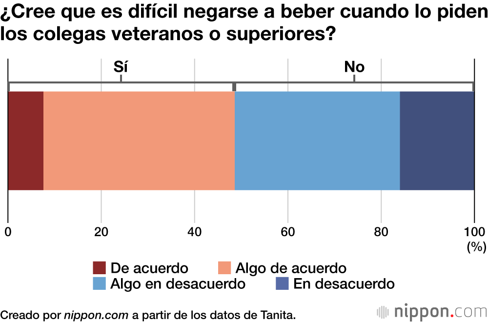 A la pregunta de si es difícil rechazar el alcohol cuando se lo ofrece un colega mayor o un superior, el 48,6 % del total respondió afirmativamente, casi la mitad del total. Por sectores, el 62,5 % de los encuestados del sector financiero y de seguros, el 55,0 % del sector mayorista y minorista y el 50,4 % del sector manufacturero contestaron así con la mayoría.