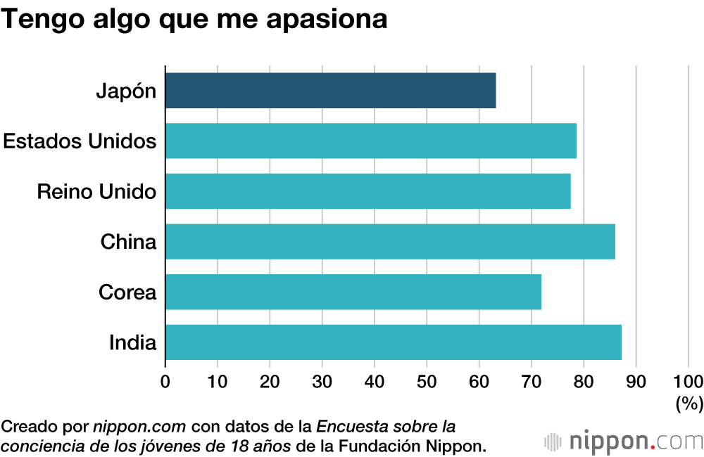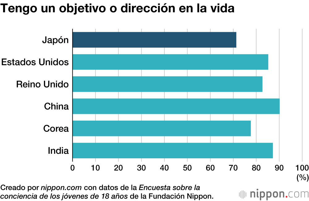 La Fundación Nippon realizó una encuesta entre 1.000 jóvenes en seis países (Japón, Estados Unidos, Reino Unido, China, Corea del Sur e India). A la pregunta de si tenían sueños de cara a su futuro, el 88,4 % en India y el 88,2 % en China respondieron “sí”, cifras que incluyen la respuesta “en parte”, frente a solo un 60,1 % en Japón.