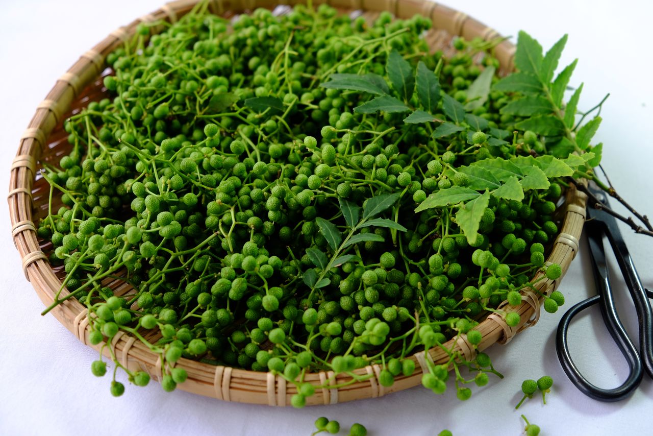 Se obtiene de un árbol caducifolio de la familia de las rutáceas. También se la conoce como shibikara y se caracteriza por su picante que adormece la lengua. Se usa desde la antigüedad como analgésico y remedio estomacal. Esta pimienta molida se usa comúnmente en platos de anguila, pero también es un ingrediente básico del shichimi.