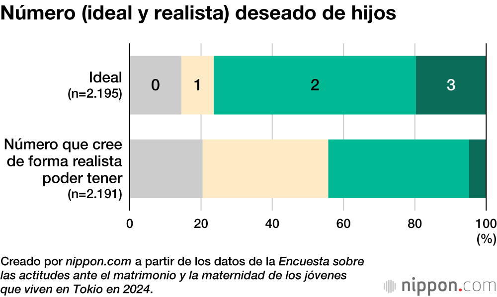 En cuanto a su número ideal de hijos, el 76,4 % de todos los encuestados respondieron que les gustaría tener dos o más hijos. Sin embargo, solo el 44,2 % de los encuestados respondieron que el “número de hijos que creo que podría tener de forma realista” era de dos o más, mientras que el 55,7 % respondió “uno o ninguno”.