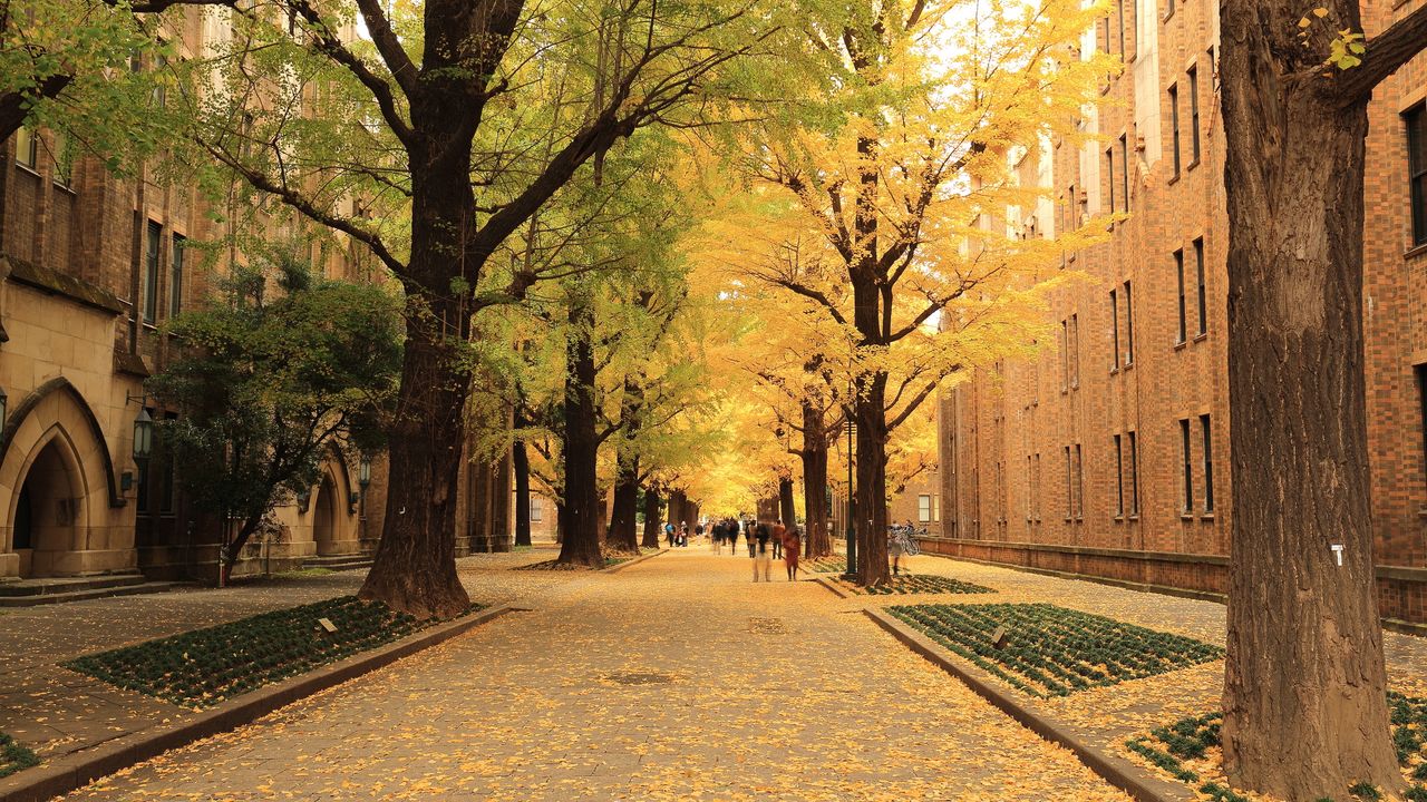 Imagen del encabezado: una hilera de ginkgos en un camino del campus de Hongō de la Universidad de Tokio. (© Pixta)