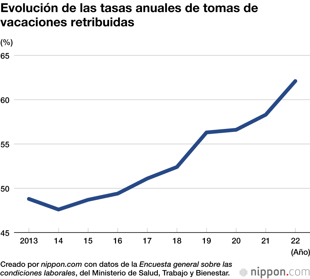 Las vacaciones anuales retribuidas muestran un ligero aumento en el número de días utilizados: 10,9 días en 2022, una cifra que supera los diez días por cuarto año consecutivo. La tasa de disfrute superó el 50 % en 2017 y fue del 62,1 % en 2022, lo que supone un aumento de 3,8 puntos porcentuales respecto al año anterior.