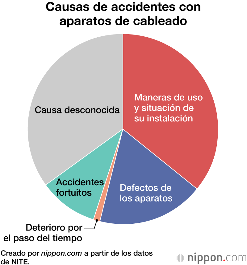 Por otro lado, según información sobre accidentes con aparatos de cableado recibida por el Instituto Nacional de Tecnología y Evaluación (NITE), muchos de ellos resultaron en incendios, y su causa más común fueron las “maneras de uso y situación de su instalación”, y supusieron el 40 % de los incidentes. Se cree que el aumento de los accidentes se debe al mayor uso de los aparatos de cableado como consecuencia de la generalización del teletrabajo.