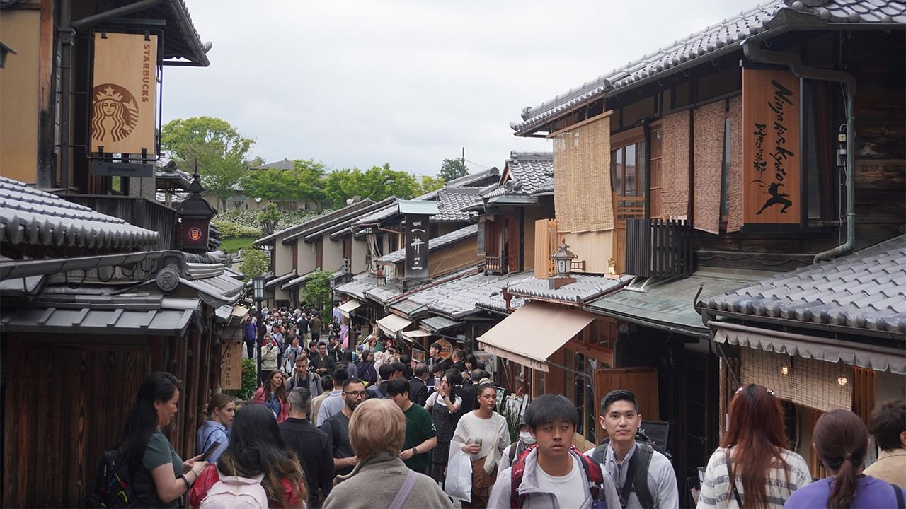 (Imagen del encabezado: Ninenzaka, abarrotada de turistas, en el distrito de Higashiyama, ciudad de Kioto, abril de 2024 - Jiji Press.)