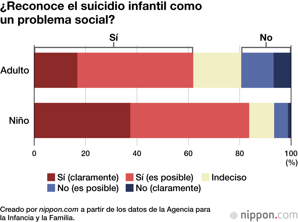 La proporción de adultos que reconocían que “el suicidio infantil es un problema social” era de un 62 %, unos 20 puntos porcentuales inferior al 83,7 % de los niños.
