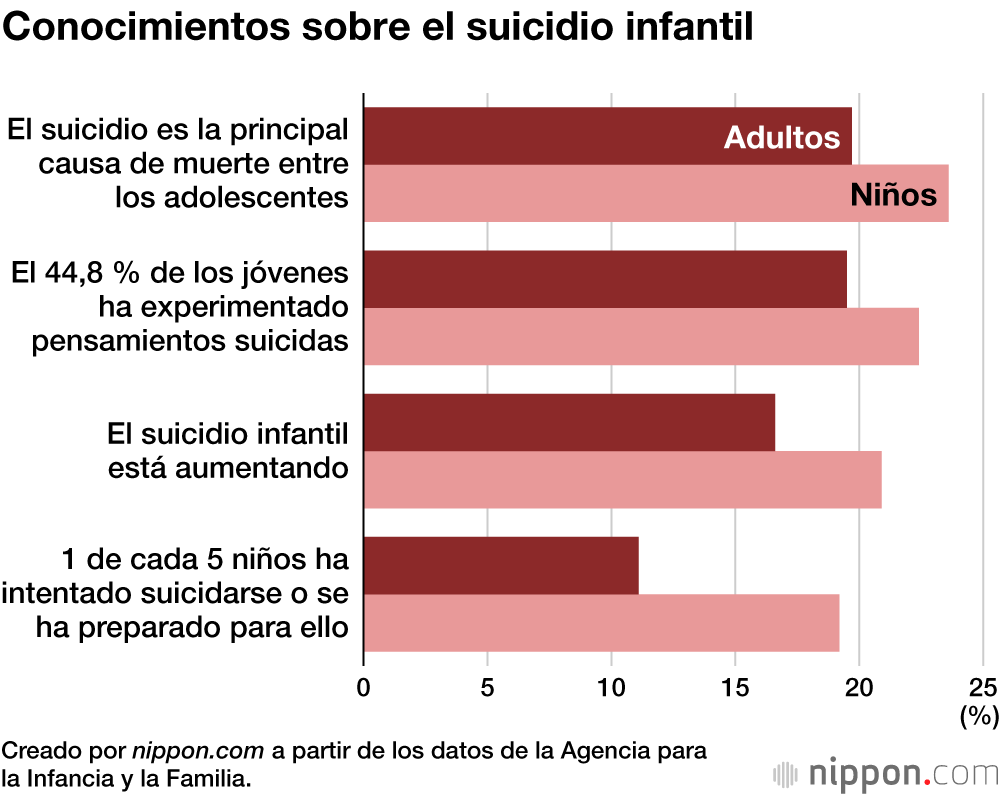Los niños también tenían más conocimientos relacionados con el suicidio en Japón, como que “el suicidio es la principal causa de muerte entre los adolescentes”, o que “uno de cada cinco niños ha intentado suicidarse o se ha preparado para ello”.