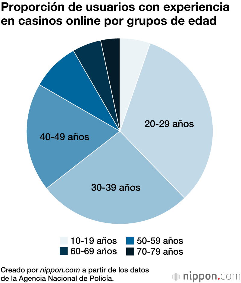 Una encuesta de la Agencia Nacional de Policía sobre el uso de casinos online reveló que el 3,45 % de los encuestados había “experimentado” el uso de casinos online extranjeros, mientras que el 2,02 % eran usuarios “actualmente”. Se estima que esto se traduce en aproximadamente 3.369.000 personas con experiencia y 1.967.000 usuarios actuales, según las proporciones de población. La apuesta anual promedio por persona se estima en cerca de 630.000 yenes, lo que sugiere que al año se apuestan dentro del país aproximadamente 1,24 billones de yenes.