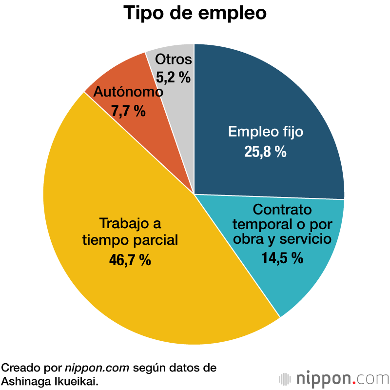 Aproximadamente el 70 % de los encuestados respondió que “trabaja”, pero solo el 25,8 % tenía un empleo fijo, y más del 60 % tenía empleos irregulares, como trabajos temporales o a tiempo parcial.