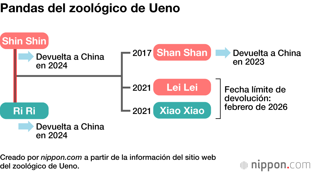A partir de julio solo quedarán dos pandas en Japón: los gemelos Lei Lei (hembra) y Xiao Xiao (macho) en el parque zoológico de Ueno, en Tokio. Sin embargo, su contrato de préstamo expirará el 20 de febrero de 2026, lo que significa que Japón podría quedarse pronto sin pandas.