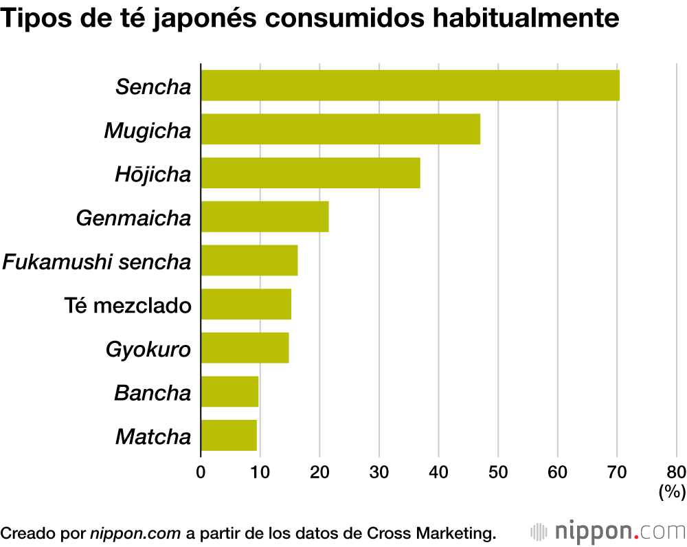 En una encuesta realizada en abril por la empresa de investigación de mercados Cross Marketing (distrito de Shinjuku, Tokio) a 1.100 personas de entre 20 y 69 años, el té verde sencha fue, con un 70,4 %, el tipo de té japonés más consumido habitualmente. Más del 60 % de los encuestados en la veintena y más del 80 % de los encuestados de 60 años o más lo bebían. Lo seguían el té de cebada (mugicha) con un 47,0 %, el té hōjicha con un 36,9 % y el té genmaicha con un 21,5 %. El té matcha apenas alcanzó el 9,4 %.