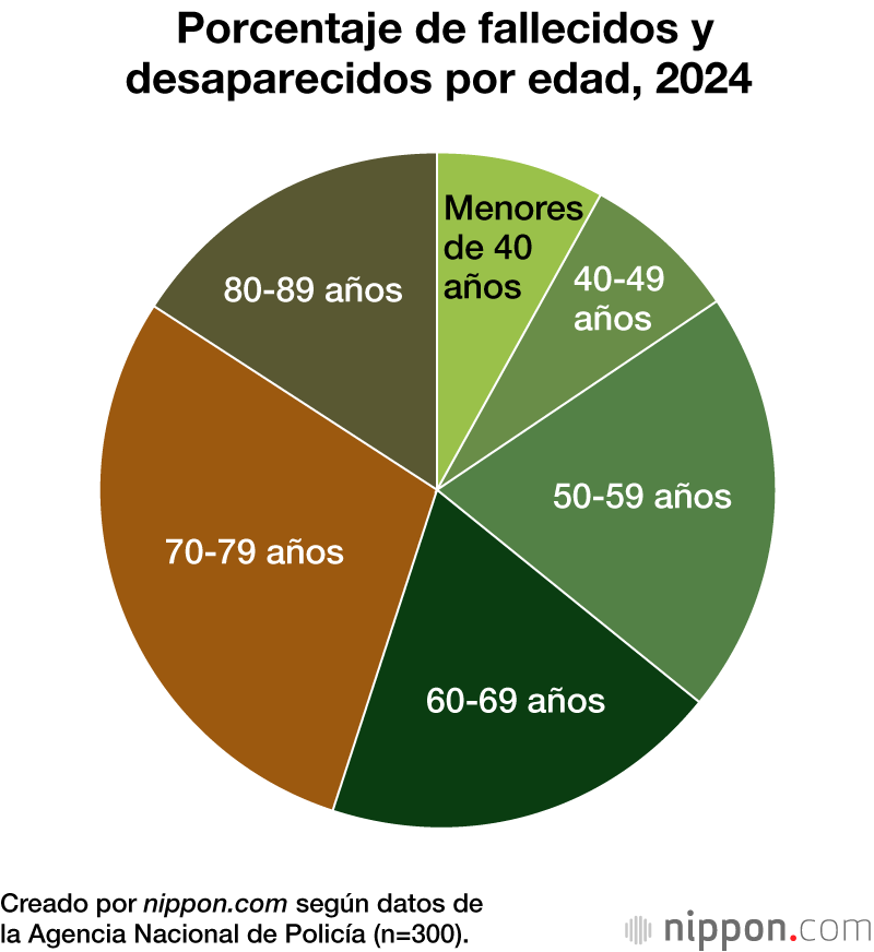 De las personas accidentadas, 2.678 (79,8 %) tenían 40 años o más, y 1.677 (50,0 %) tenían 60 años o más. En cuanto a los fallecidos y desaparecidos, 275 (91,7 %) tenían 40 años o más, y 192 (64,0 %) tenían 60 años o más.