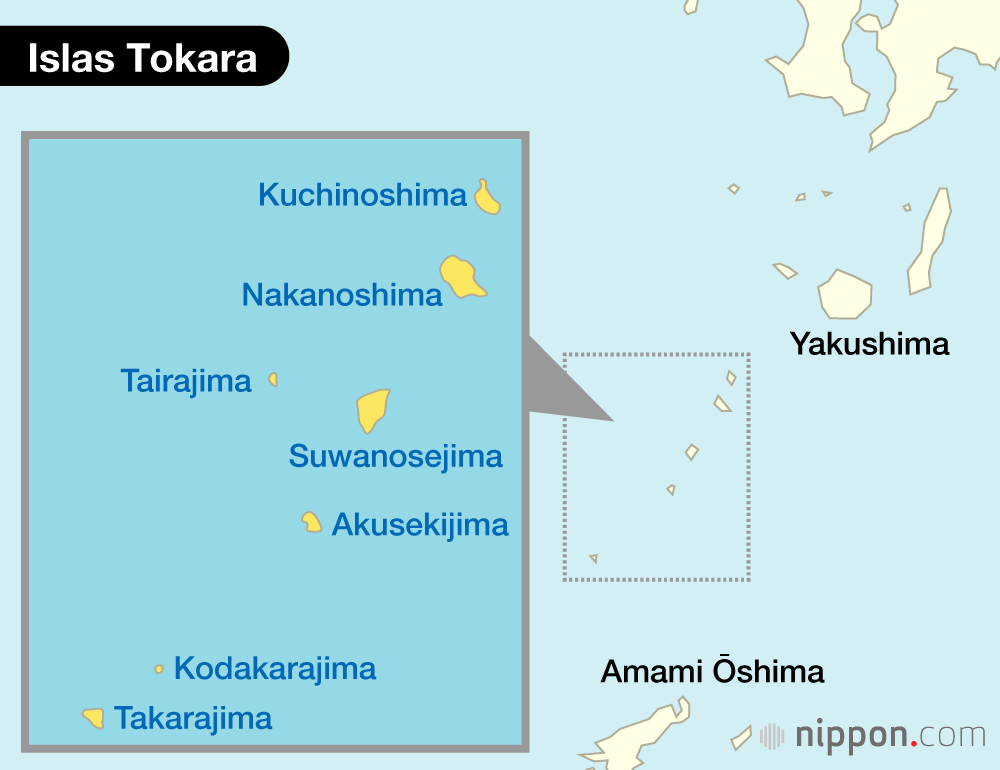 Las islas Tokara se encuentran entre Yakushima y Amami Ōshima, en aguas al sur de la prefectura de Kagoshima. Sus siete islas habitadas y cinco deshabitadas forman parte del pueblo de Toshima.