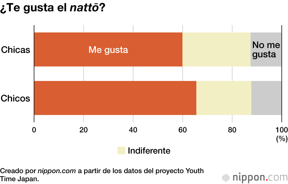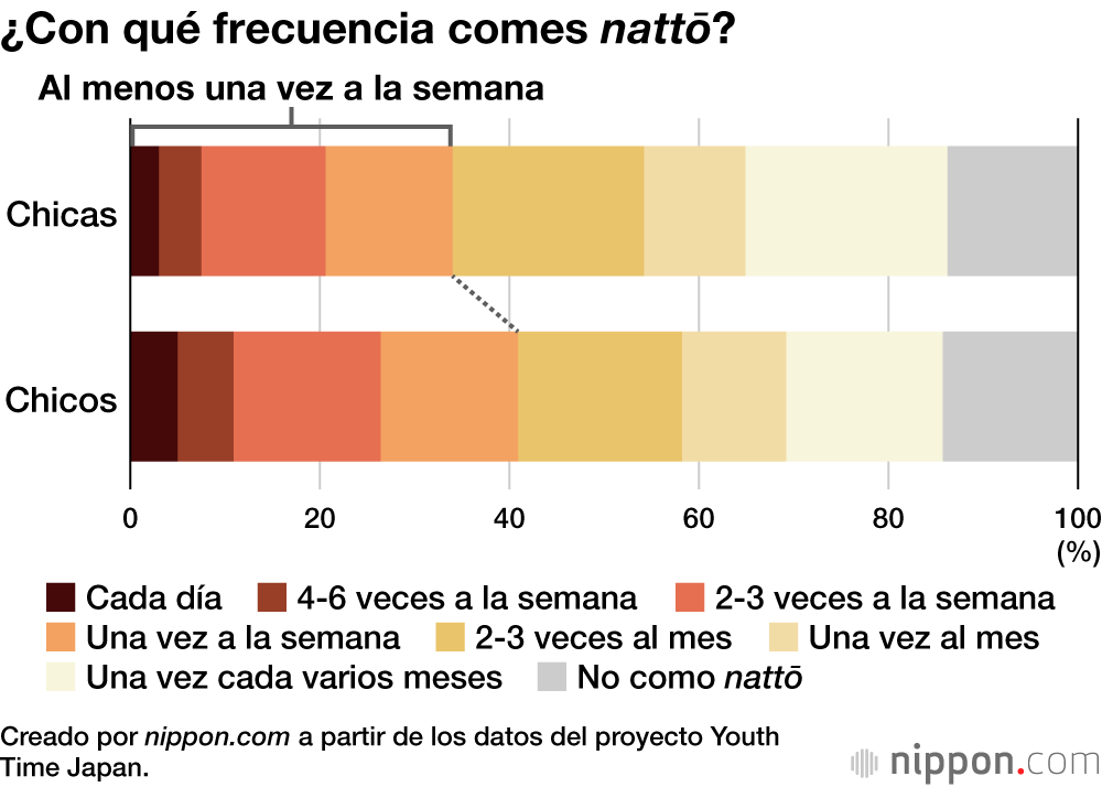 Según la encuesta, los chicos comen nattō con más frecuencia que las chicas: un 40,9 % confesó que lo come al menos una vez a la semana, en comparación con el 33,9 % de las chicas.