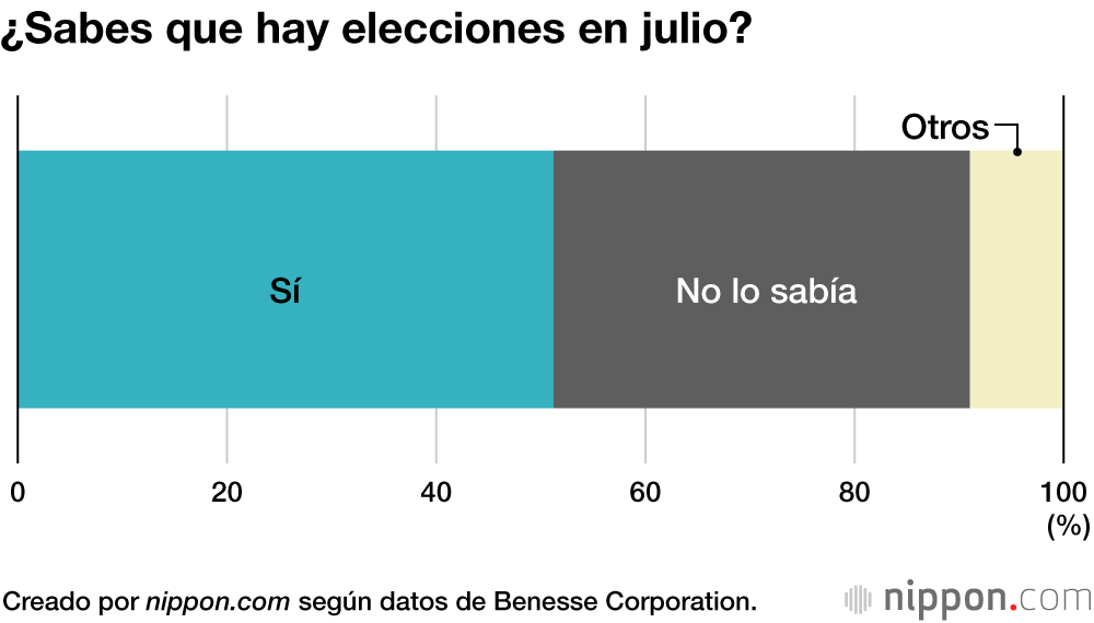 La empresa Benesse Corporation (Okayama) realizó una encuesta a finales de junio entre 6.560 alumnos de tercero a sexto de primaria, matriculados en su curso a distancia Shinken Zemi Elementary Course, con vistas a las elecciones a la Cámara de Consejeros que se celebrarán el 20 de julio.
