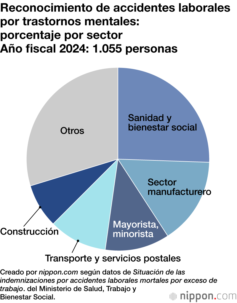 Entre estos casos, 247 fueron reconocidos como accidentes laborales causados por enfermedades cerebrovasculares o cardíacas, y 1.057 por trastornos mentales como la depresión. Fue la primera vez que se superaron los 1.000 casos de trastornos mentales reconocidos como accidentes laborales. De ellos, 89 fueron suicidios o intentos de suicidio.