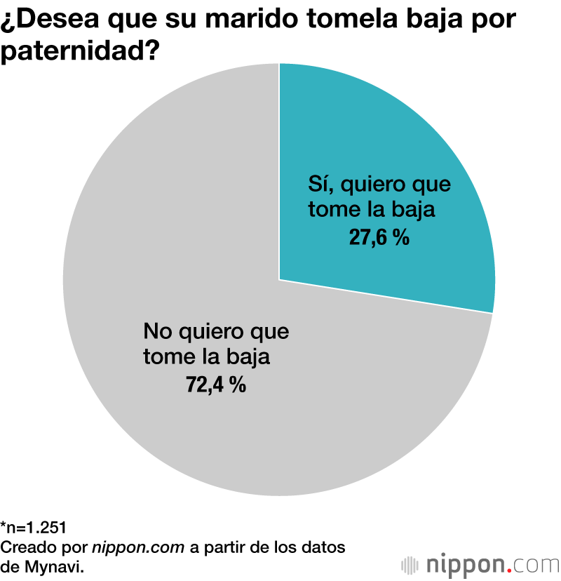 Una encuesta realizada por la empresa Mynavi a mujeres casadas de entre 20 y 59 años que trabajan a tiempo parcial reveló que un 72,4 % de las participantes con hijos y cuyos maridos nunca habían pedido la baja por paternidad no deseaban que sus cónyuges se tomasen dicho permiso.