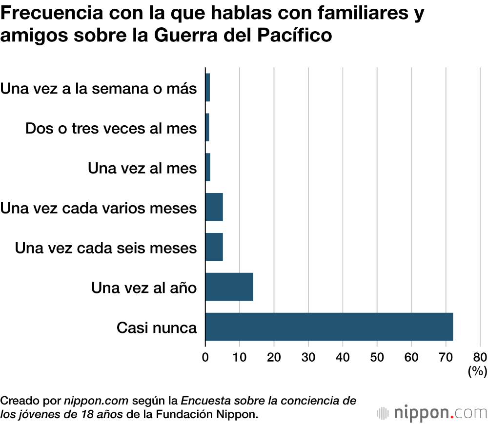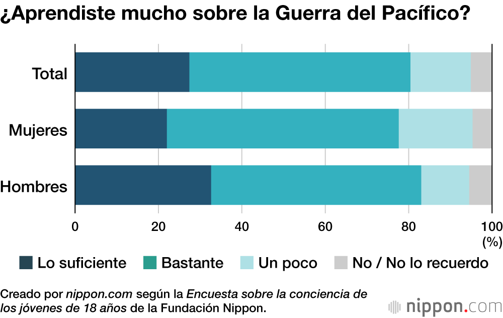 La Fundación Nippon, que realiza periódicamente encuestas de conciencia entre jóvenes para conocer su punto de vista, preguntó a 1.000 jóvenes de entre 17 y 19 años de todo el país, a mediados de junio de 2025, antes de que se cumplieran 80 años del fin de la guerra, sobre la Guerra del Pacífico.
