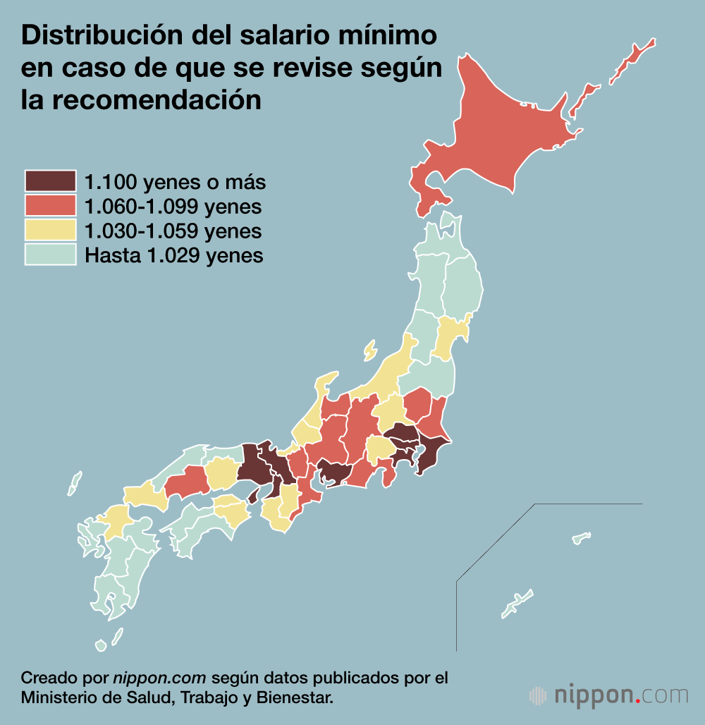 De acuerdo con la propuesta de aumento, las prefecturas de Tokio (1.226 yenes) y Kanagawa (1.225 yenes) superarán por primera vez los 1.200 yenes. Otras prefecturas de las tres áreas metropolitanas principales, como Saitama, Chiba, Aichi, Ōsaka, Kioto y Hyōgo, superarán los 1.100 yenes. En las regiones de Tōhoku, Kyūshū y Shikoku, la mayoría de las prefecturas se mantendrán en la franja entre los 1.000 y 1.050 yenes.