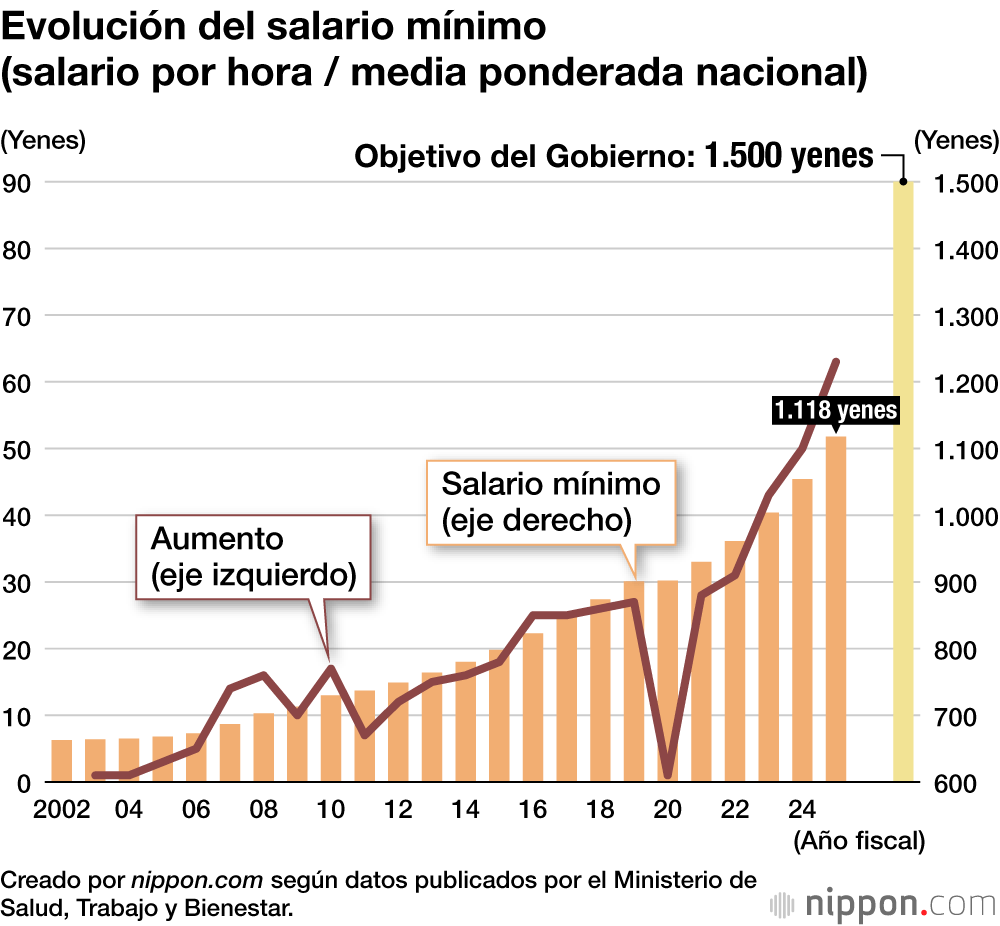 El 4 de agosto, el Consejo Central del Salario Mínimo (órgano consultivo del ministro de Salud, Trabajo y Bienestar) recomendó al ministro Fukuoka Takamaro que aumentara 63 yenes el salario mínimo para el año fiscal 2025. Desde que se adoptó el actual sistema de indicar el salario por hora en 2002, este aumento supera con creces los 43 yenes de 2023 y los 51 yenes de 2024, y es el mayor incremento en la historia. Si se revisa según lo previsto, el salario medio nacional pasará de 1.055 a 1.118 yenes por hora, superando los 1.000 yenes en todas las prefecturas.