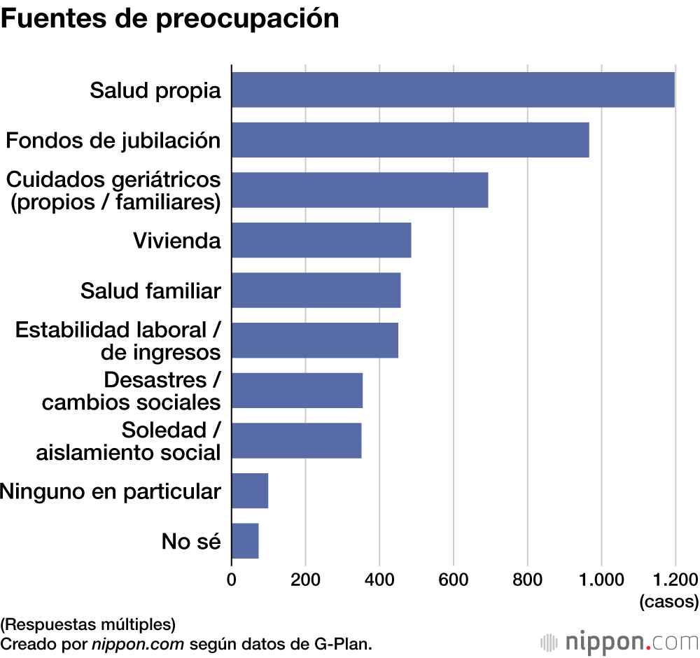 En cuanto a las preocupaciones específicas, la “salud” fue la más común, con 1.197 respuestas. La siguieron los “fondos de jubilación”, con 966 respuestas, y los “cuidados geriátricos”, con 693 respuestas.