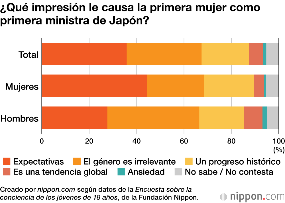 Por otro lado, solo el 1,3 % de los encuestados manifestó “ansiedad”. El número de personas con una visión negativa debido únicamente a que Takaichi es mujer fue muy minoritario.