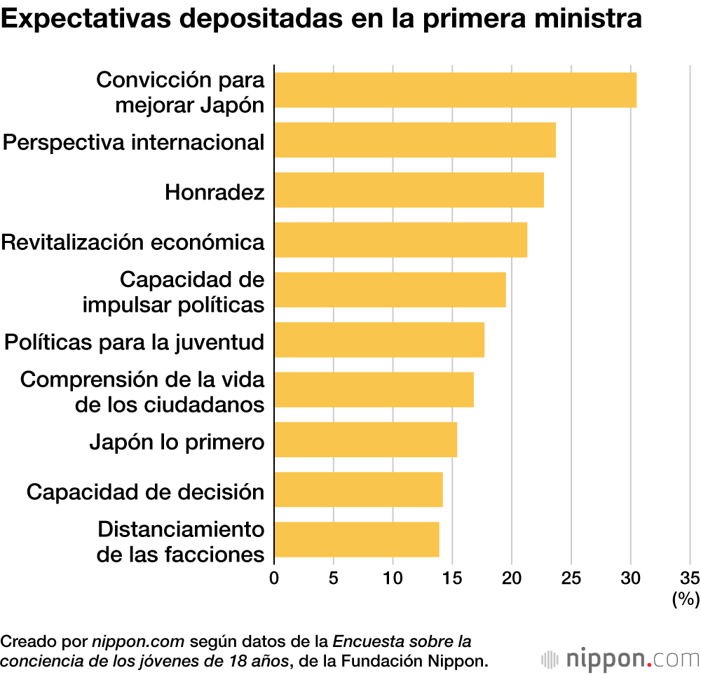 La principal expectativa depositada en la primera ministra Takaichi fue respecto a su “convicción para mejorar Japón” (30,5 %). Le siguieron su “sentido internacional” (23,7 %) y su “sinceridad” (22,7 %).