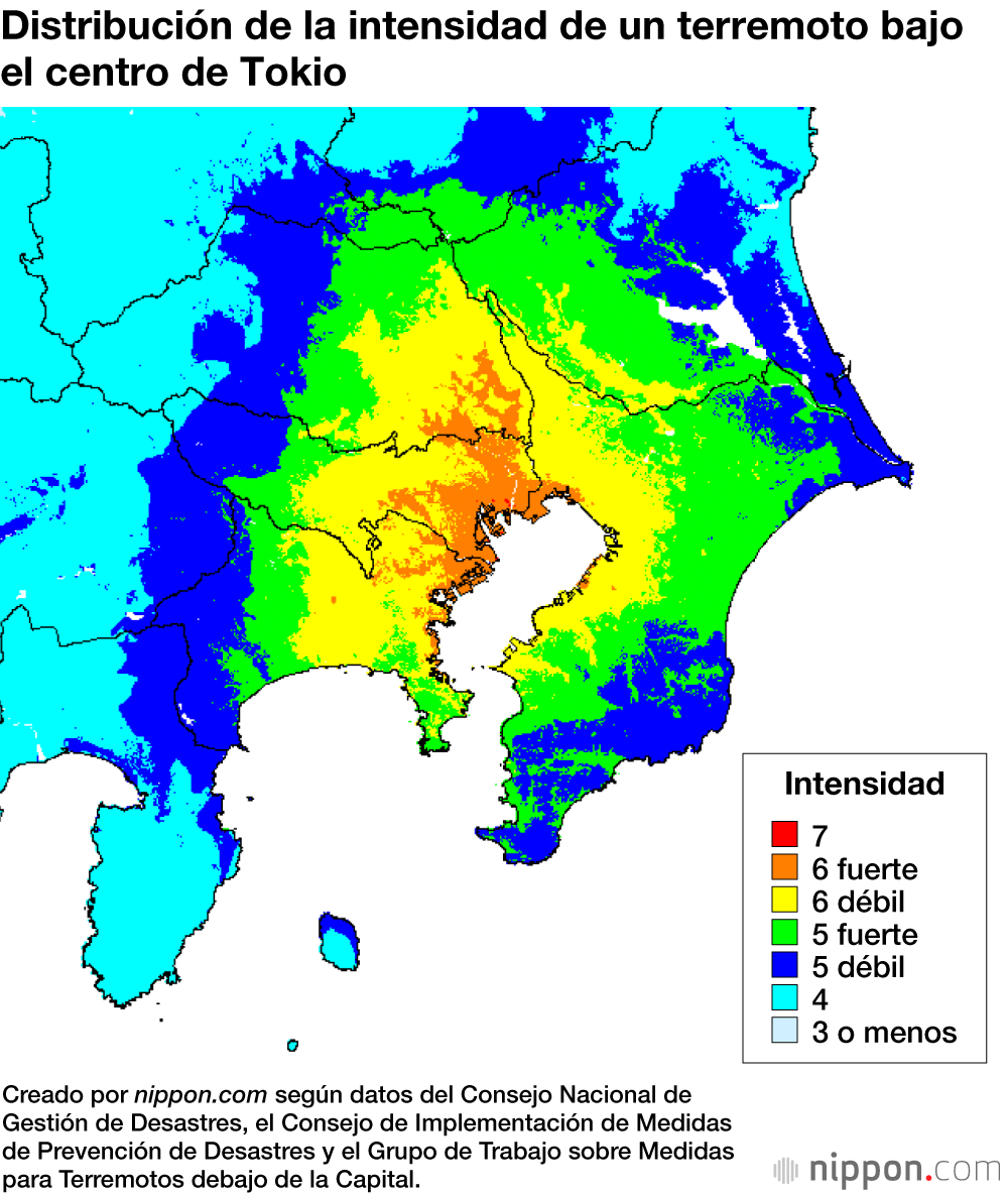 El Gobierno ha publicado nuevas estimaciones de los daños que causaría un gran terremoto justo debajo de la capital. Si se produjera un terremoto de magnitud 7 con hipocentro en el sur del centro de Tokio, se producirían sacudidas de intensidad 6 o superior, en la escala japonesa, en una amplia zona. En el peor de los casos morirían unas 18.000 personas, principalmente en las prefecturas de Tokio, Kanagawa, Saitama y Chiba. Los daños y el impacto económicos ascenderían a cerca de 83 billones de yenes.