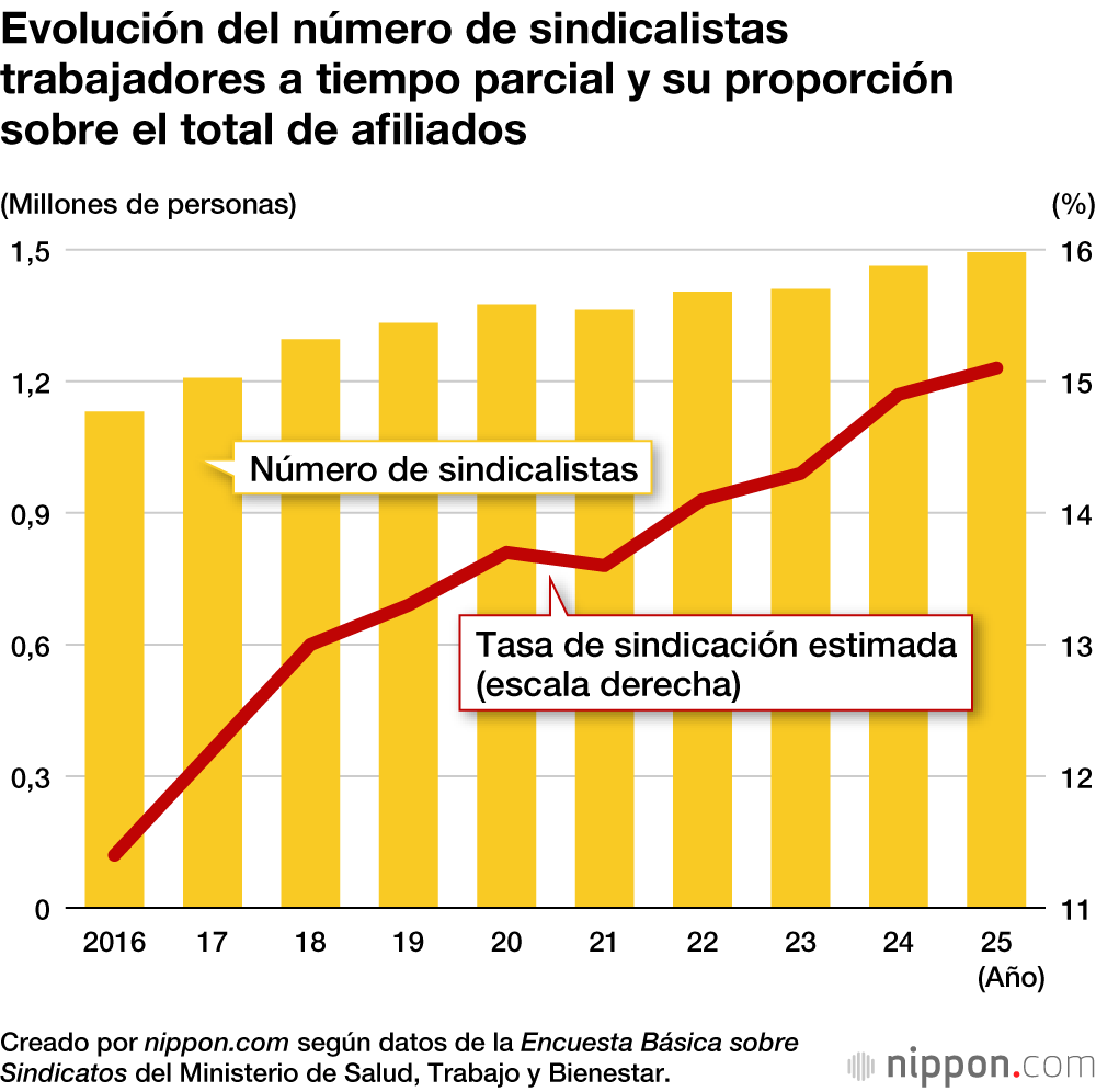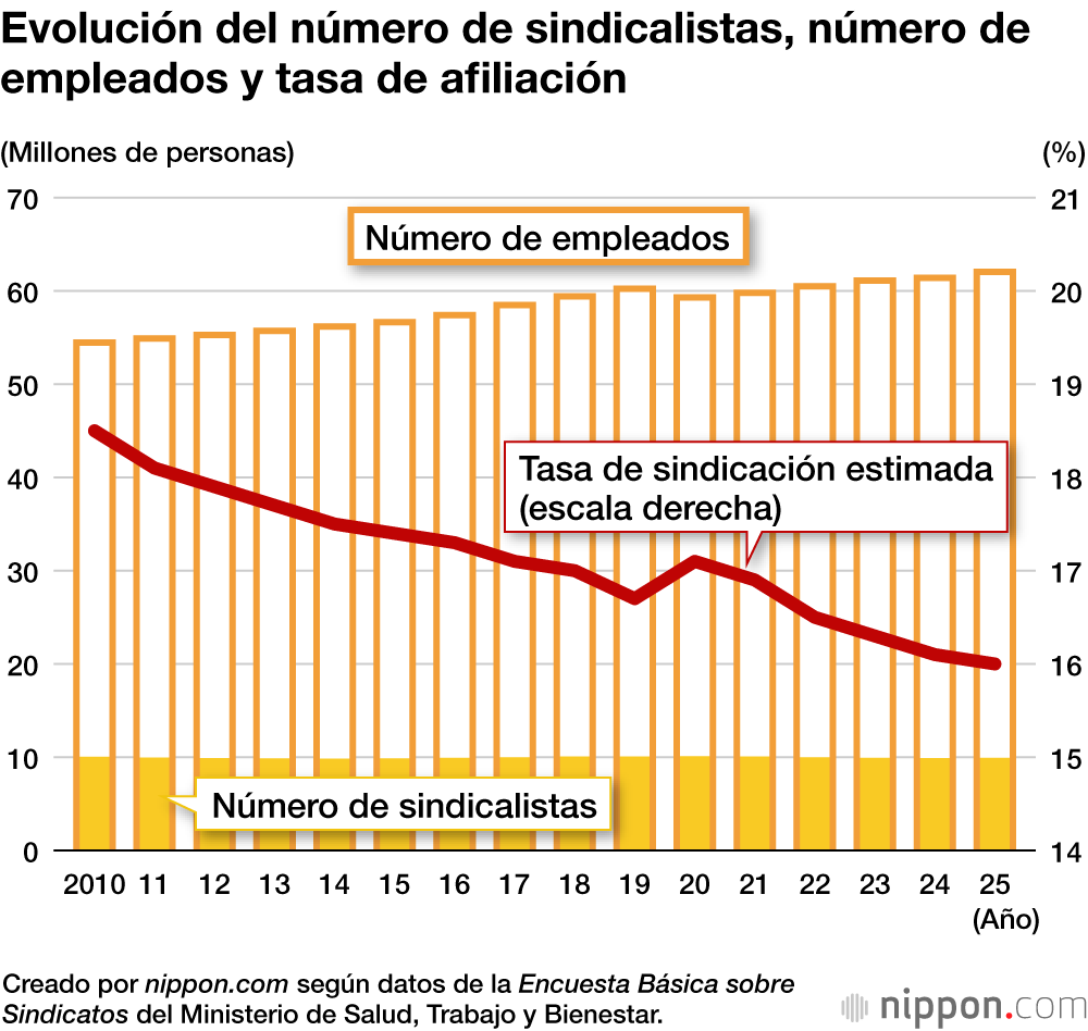La tasa de sindicación ha encadenado cinco años consecutivos de descensos desde 2021. La de 2025 muestra el nivel más bajo registrado desde que el Ministerio de Salud, Trabajo y Bienestar iniciara su encuesta, en 1947.