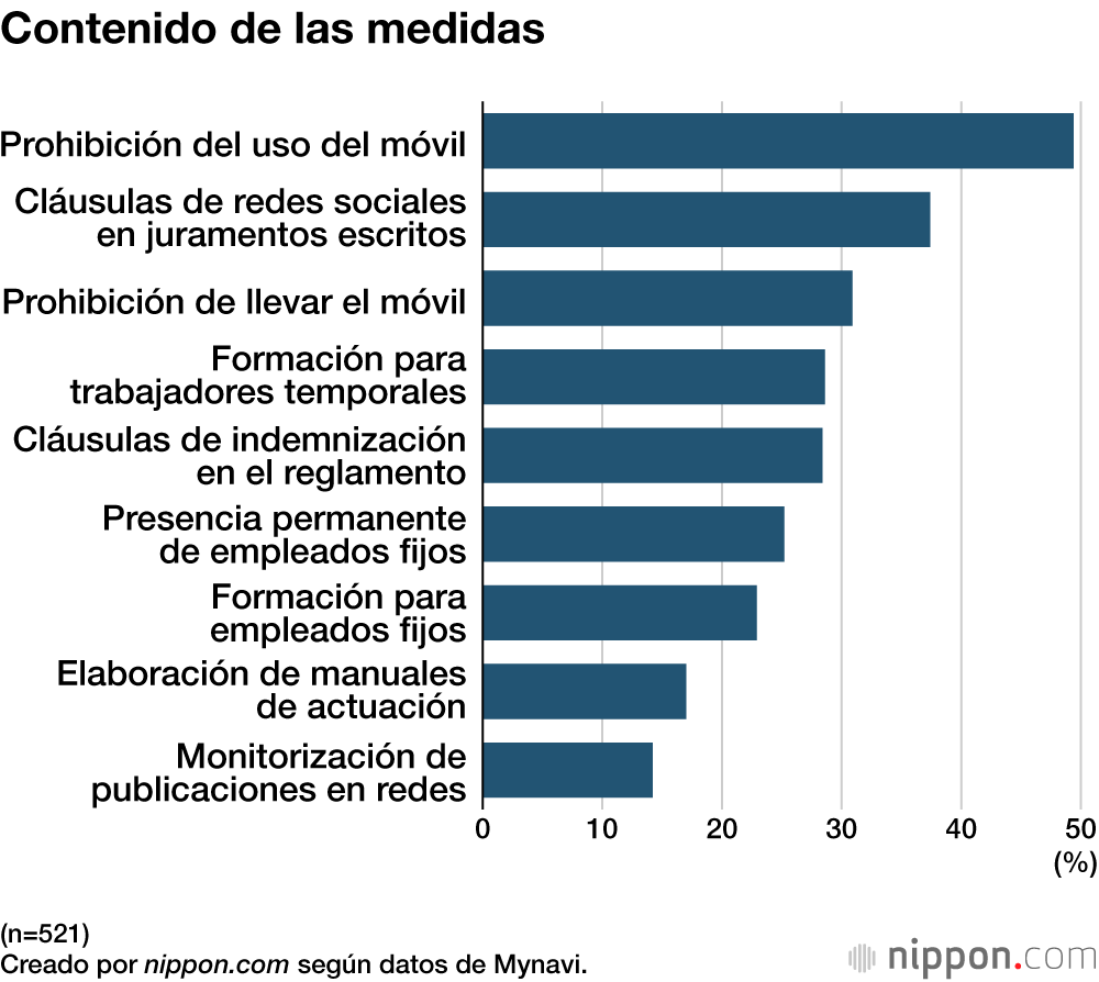 Entre las medidas concretas destacan la “prohibición de usar o llevar teléfonos móviles durante el horario de trabajo” y la inclusión de “cláusulas sobre redes sociales en los juramentos escritos”.