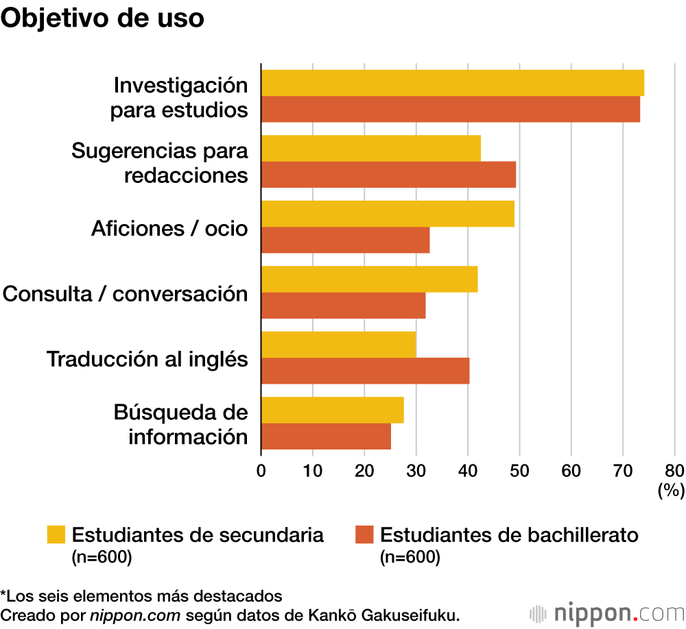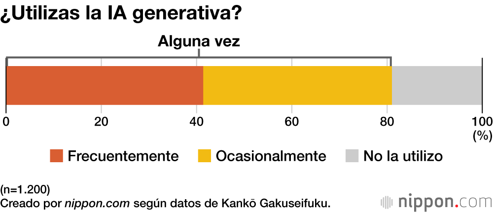 Kankō Gakuseifuku, un importante fabricante de uniformes escolares con sede en la ciudad de Okayama, realizó en enero de 2026 una encuesta sobre el uso real de la IA generativa entre 1.200 estudiantes de secundaria y bachillerato de todo el país. Al combinar las respuestas “frecuentemente” y “ocasionalmente”, cerca del 80 % afirmó haber utilizado herramientas como ChatGPT o Gemini. Por sexos, el 46,8 % de las chicas declaró usarla “frecuentemente”, una cifra diez puntos superior al 36,0 % de los chicos.