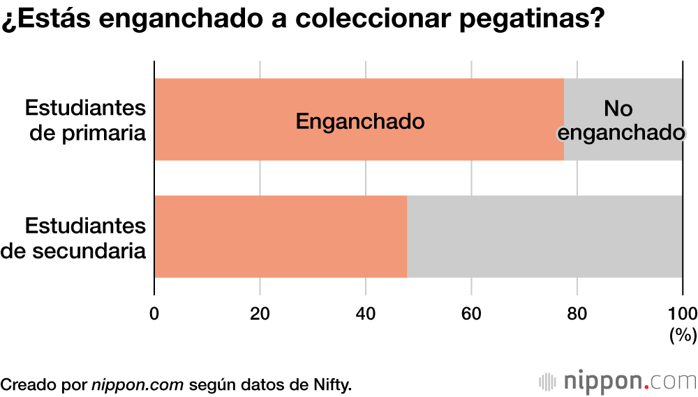 El auge de las pegatinas se ha intensificado hasta el punto de que se agotan los productos y se imponen restricciones de compra. En una encuesta realizada por Nifty (con sede en el distrito de Shinjuku) entre finales de 2025 y enero de 2026 a través de su página web infantil Nifty Kids (2.484 respuestas válidas), el 77,5 % de los alumnos de primaria y el 47,8 % de los de secundaria afirmaron estar “enganchados” a coleccionar pegatinas.