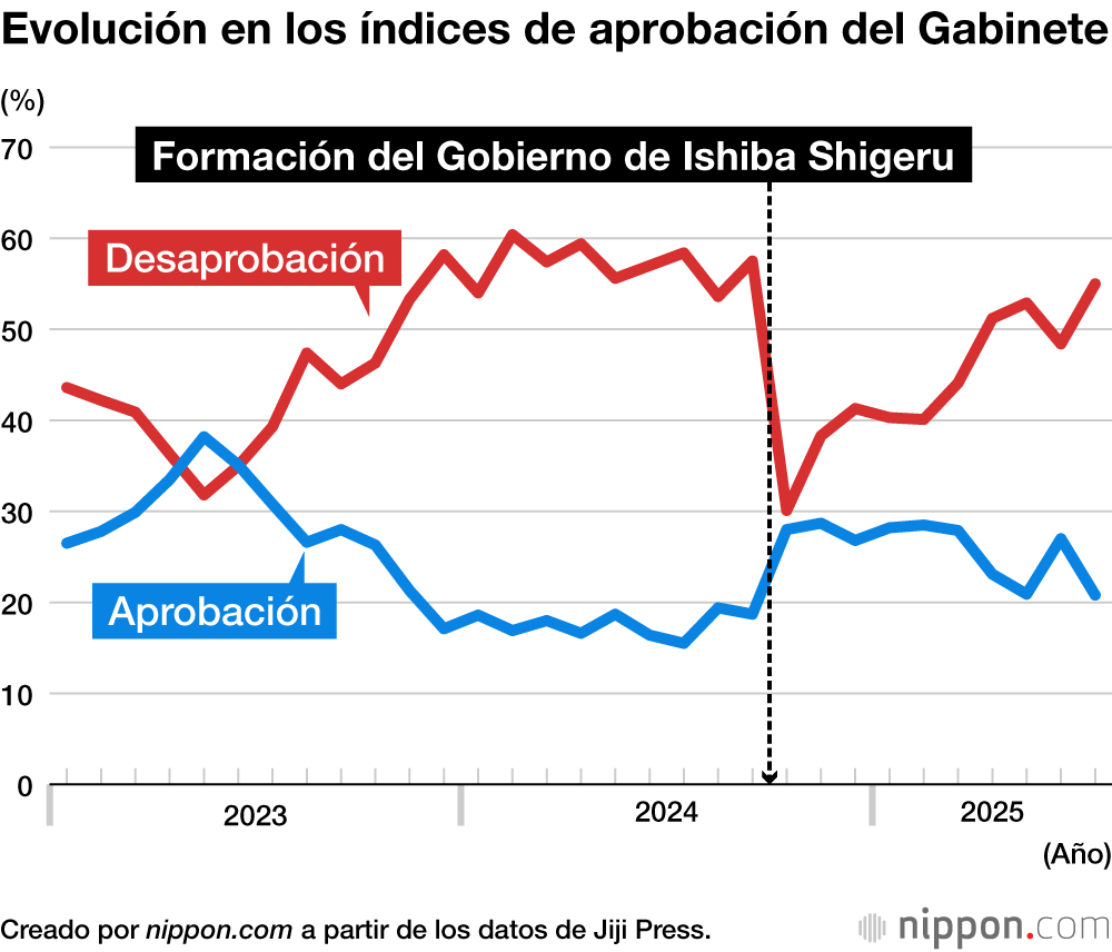 Los principales medios de comunicación japoneses han publicado los resultados de sus sondeos de opinión pública de julio de 2025. En ese mes se celebraron las elecciones a la Cámara de Consejeros —la Cámara Alta de la Dieta—, en las que la coalición gobernante del Partido Liberal Democrático y el Kōmeitō perdió la mayoría simple en la cámara. Los resultados de las encuestas confirmaron estas malas noticias para el primer ministro Ishiba Shigeru, al reflejar fuertes caídas en el porcentaje de encuestados que aprueban su gestión.