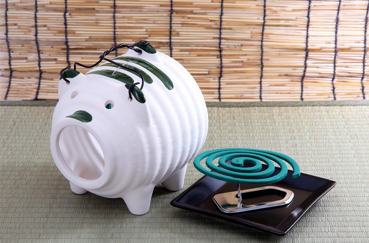 Con la humedad característica del verano japonés, llegan también los mosquitos. Una manera de ahuyentarlos es encendiendo un incienso especial que los repele (katori senkō); lo fabricó en 1890, por primera vez en todo el mundo, una empresa de Osaka que a día de hoy lleva 134 años en activo, y lo hizo a partir de una semilla de piretro o pelitre de Dalmacia procedente de Estados Unidos. Este incienso se comercializa con forma de espiral y ayuda a evitar las picaduras de estos insectos que tanto abundan en la época estival.