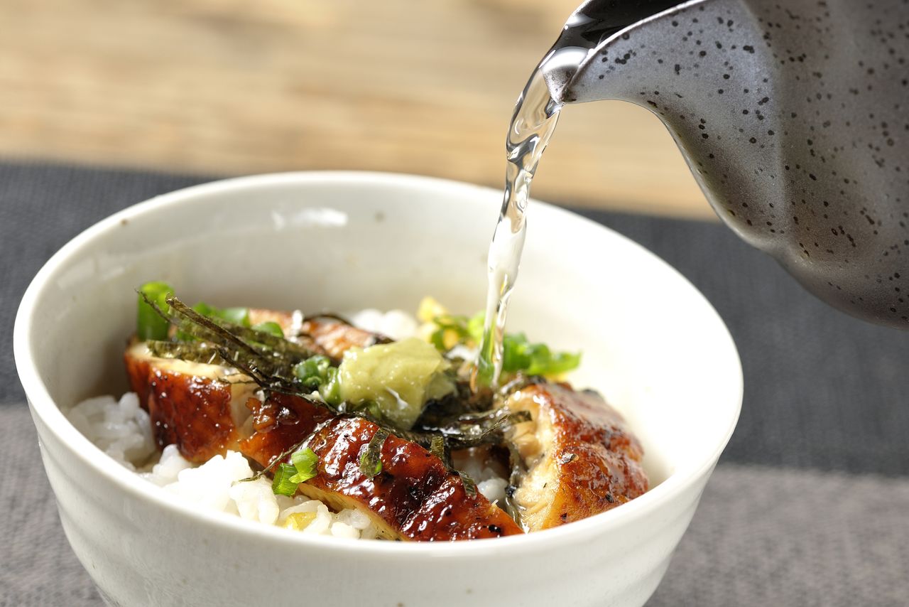 Chazuke con caldo dashi y anguila. (Pixta)