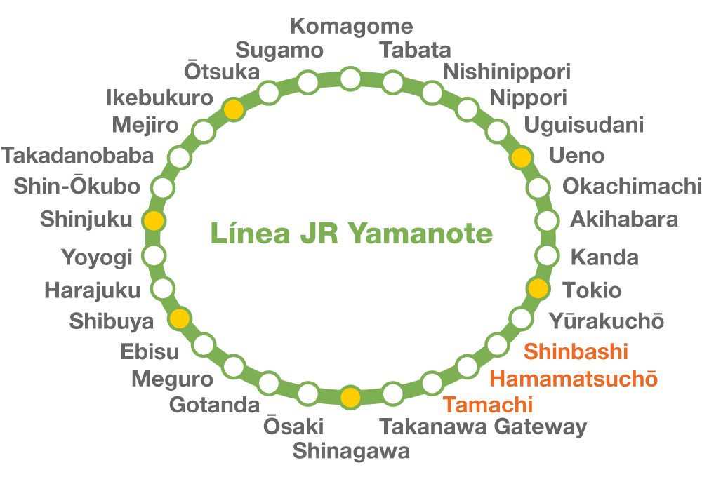 Las estaciones del bucle de la línea Yamanote. (© Pixta)