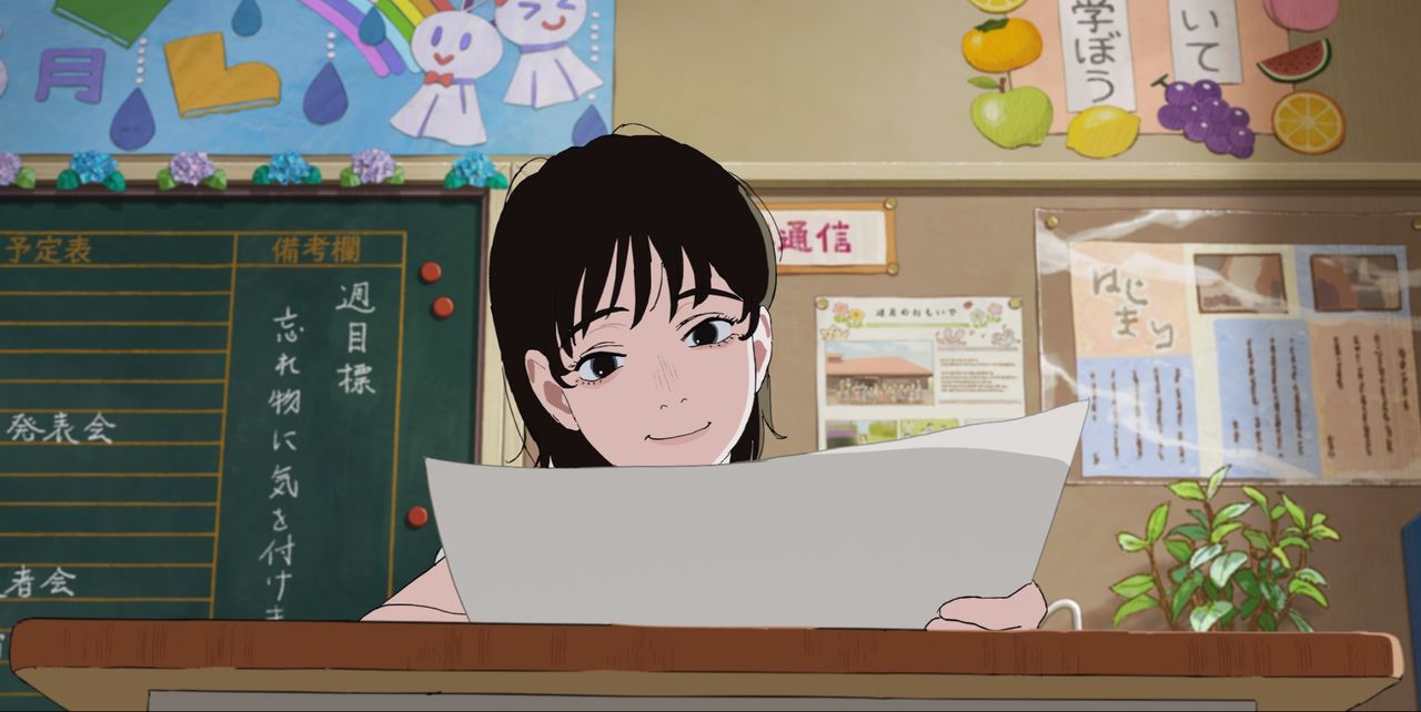 Esto no se debe únicamente a que la película sea de animación y cuente con la participación de un gran número de personas. Como ya se ha mencionado, la película interpreta la historia original con un “tiempo” que no está presente en el manga. El tiempo entre Fujino y Kyōmoto se halla cuidadosamente planteado, y su valor perdura en la mente. Se subraya el peso de un tiempo que nunca volverá. En el clímax se activa un dispositivo que implica el tiempo, con el que se agitan las emociones del público, algo que solo es posible en una película en la que existe ese flujo temporal.