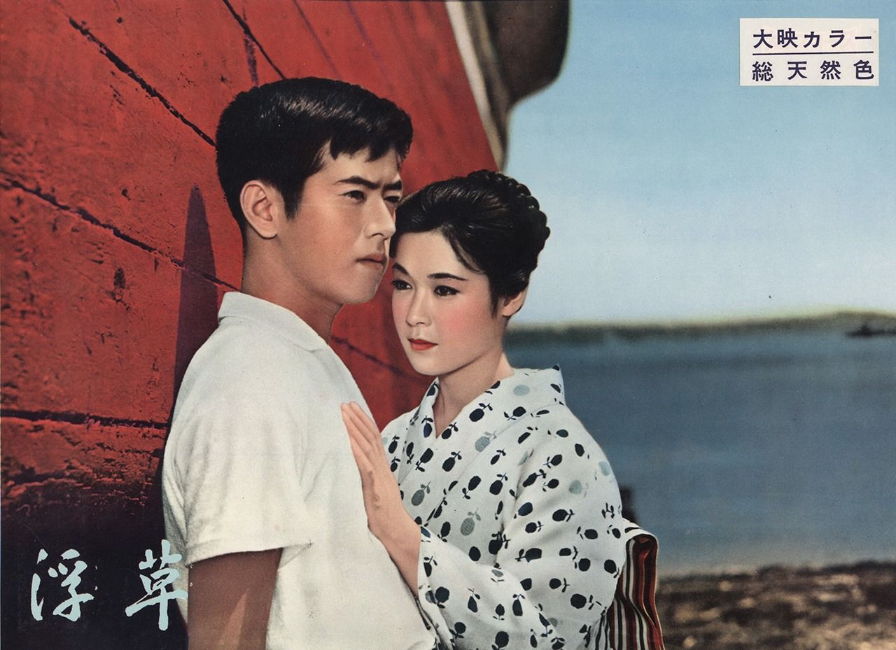 Ukikusa (1959), dirigida por Ozu Yasujirō. Kawaguchi Hiroshi interpreta a Kiyo, quien será seducido por Kayo, actriz de un grupo de artistas itinerantes © KADOKAWA 1959.