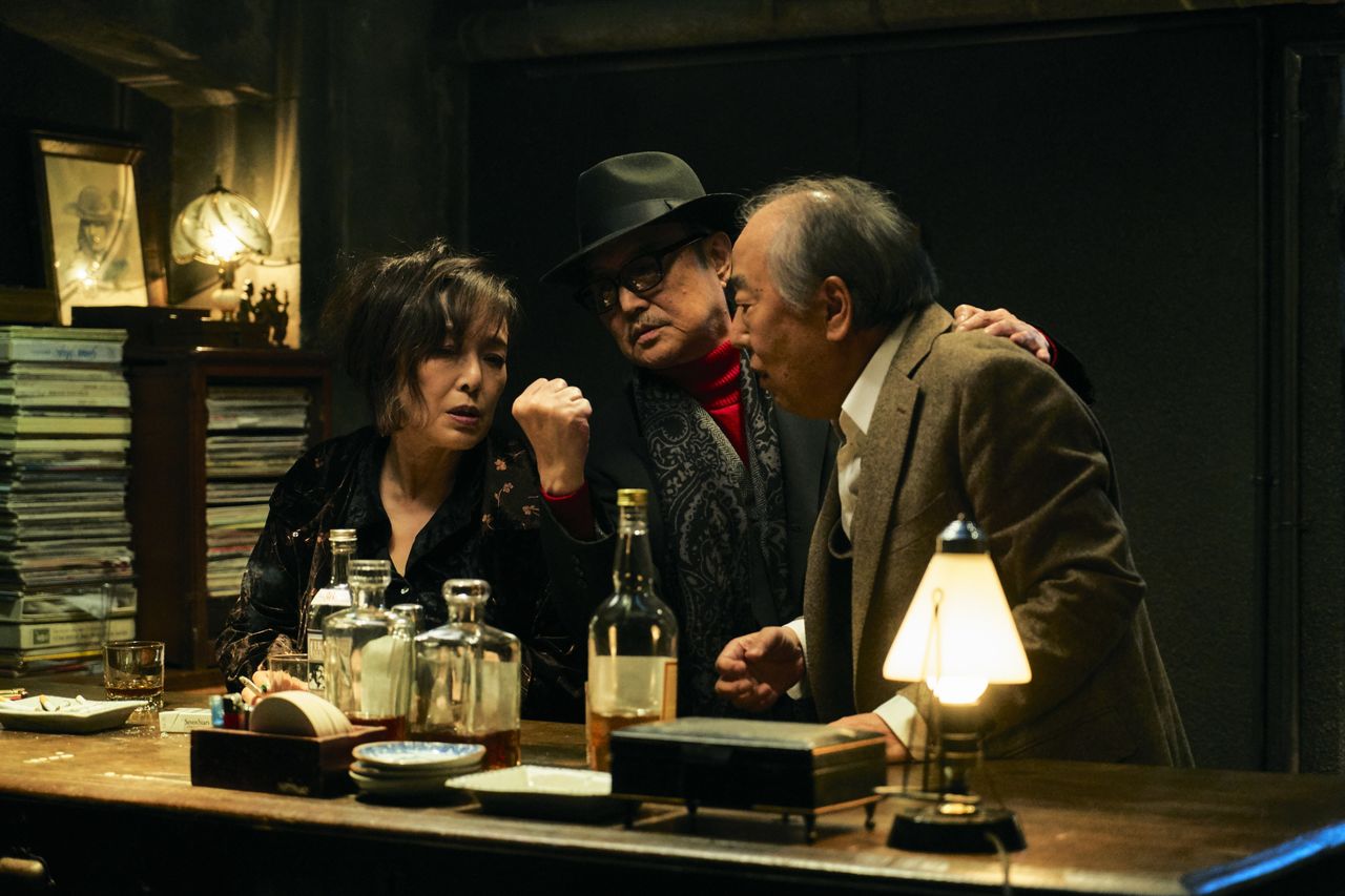 En el bar Y de la gran ciudad, Ichikawa (Ishibashi Renji) bebe por la noche con Ishida (Kishibe Ittoku), abogado y exfiscal de élite, y Hikaru (Momoi Kaori), una antigua actriz de musicales ©2019 Ichido mo uttemasen Film Partners
