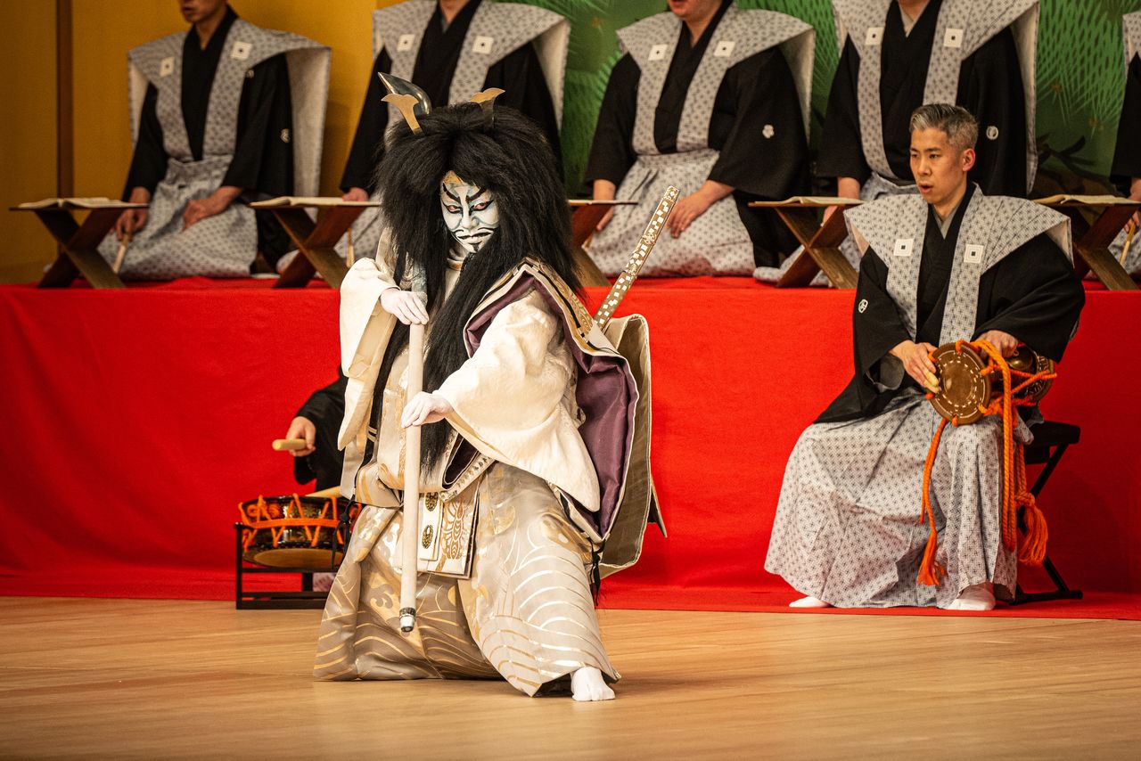 La actuación conjunta con Nomura Yūki (derecha) mostró los vínculos y las diferencias entre las formas expresivas del kabuki y el nō.