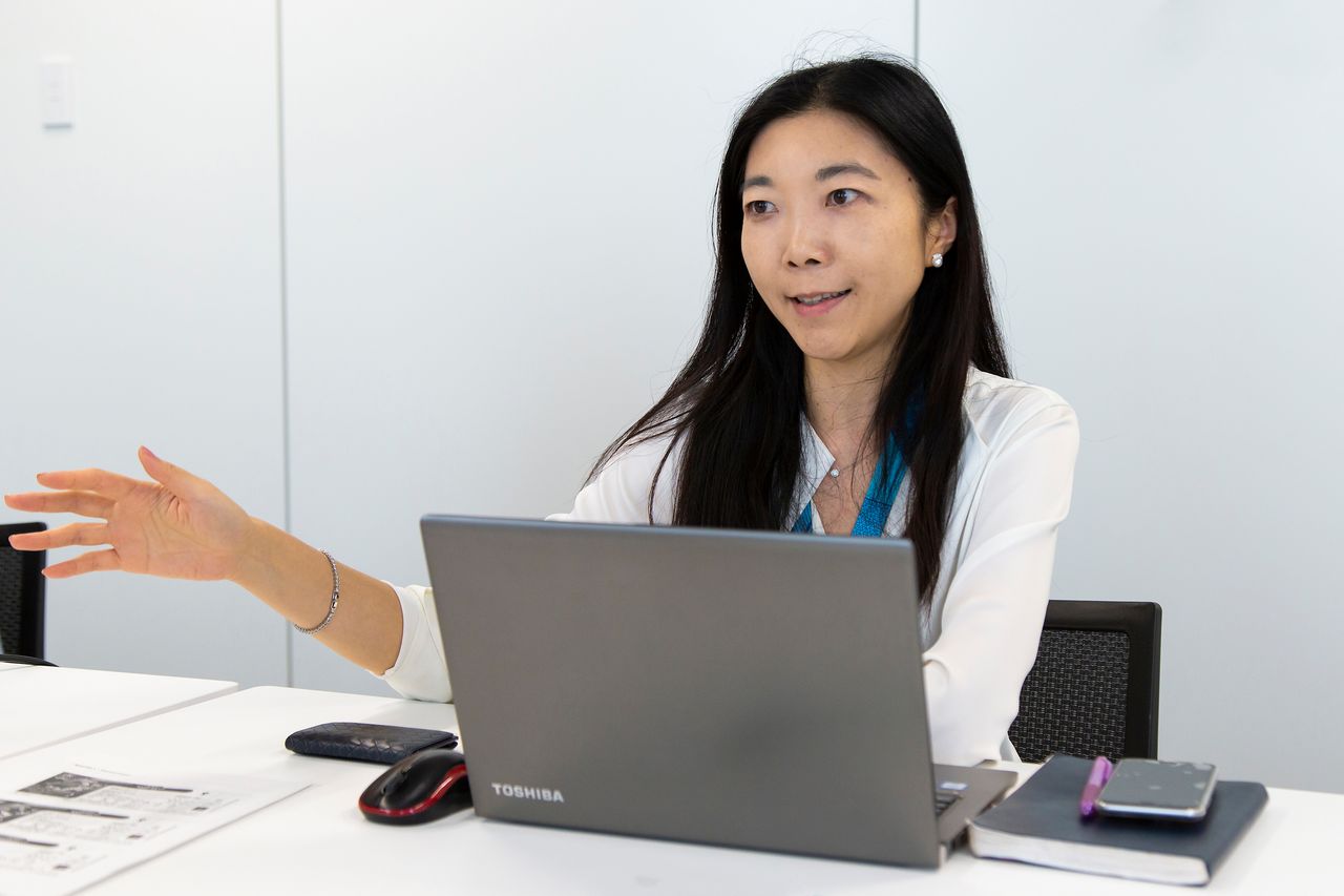La jefa del Departamento de Entradas Miyoshi Mikiko comenta el diseño de las entradas.