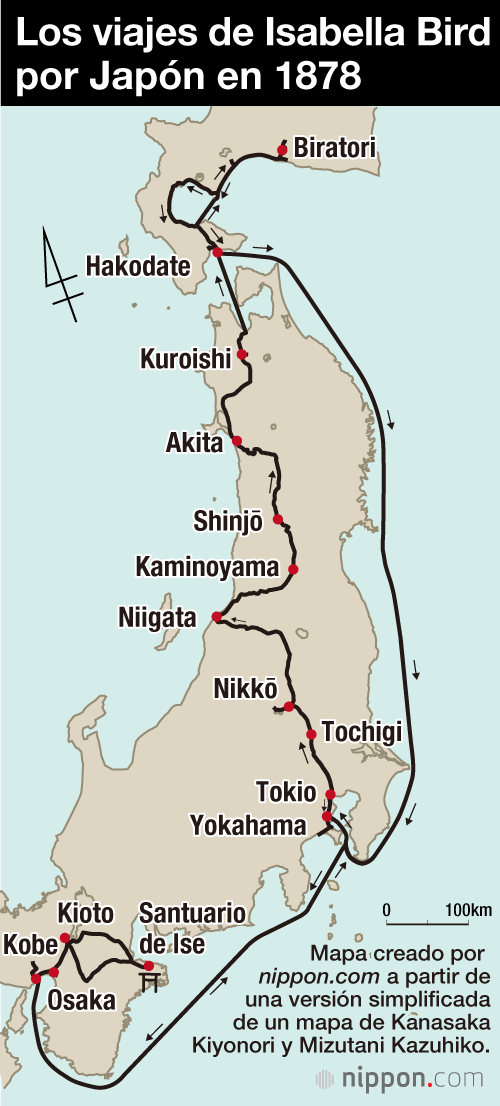 Isabella Bird nació en Boroughbridge, Yorkshire, en 1831; era la mayor de las dos hijas de un párroco local. Entre 1854 y 1901, tres años antes de morir, realizó una impresionante serie de viajes que la llevaron a todos los continentes exceptuando Sudamérica. Dada la duración y la amplitud geográfica de esos viajes, así como la calidad de las charlas y libros que escribió sobre ellos merece ser recordada no solo como una de las principales mujeres viajeras, sino como uno de los mayores viajeros de todos los tiempos, de cualquier sexo. Buena prueba de esto es que en 1891 se convirtió en la primera mujer en ser elegida miembro especial de la Royal Geographical Society. Uno de sus momentos más importantes en su carrera como viajera fue su viaje a Japón, realizado en 1878.