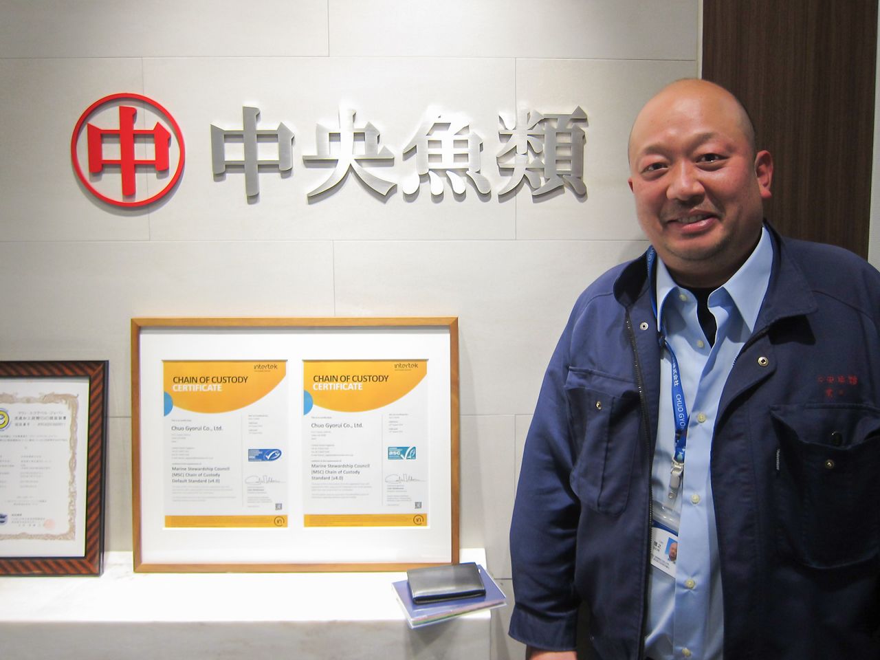 Sekine Takayuki, empleado de Chūō Gyorui al que se le ocurrió la idea de comercializar las bandejas de atún Maguro Sankan'ō (imagen del autor).