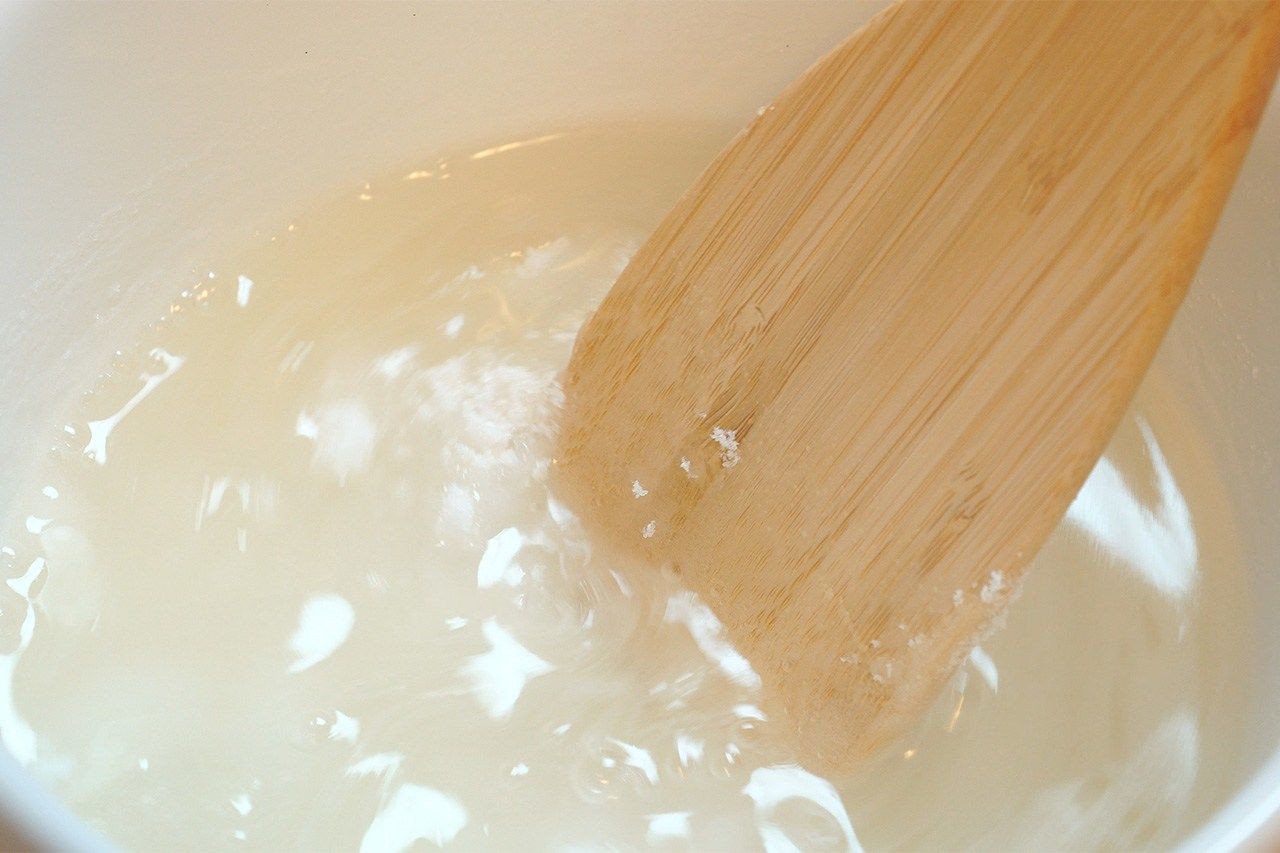 - Vierta el kanten y el agua en una olla y caliéntelos a fuego medio. Mezcle bien durante dos minutos y deje que hierva para disolverlo.