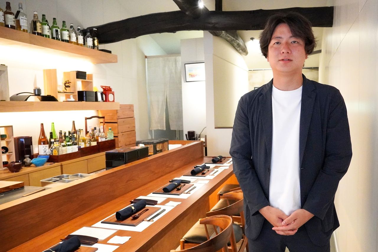 Taya Takahiro en el restaurante Crafeat, en Kanazawa. (© Nakahara Mieko)