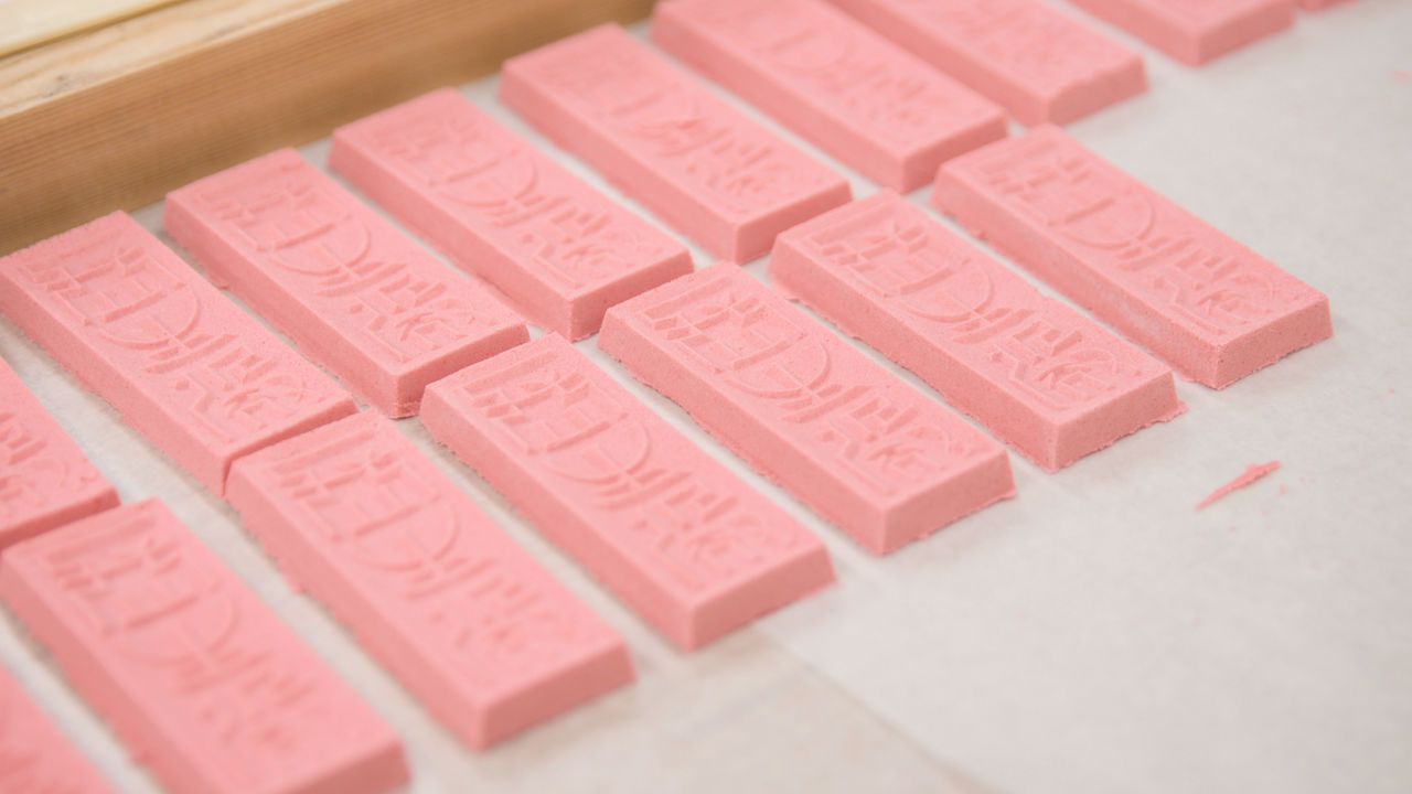 Estos dulces están hechos de un tipo de azúcar llamado wasanbon, de Shikoku, y de harina de arroz glutinoso de Hokuriku. Para darles su tradicional forma, los ingredientes se comprimen en un molde de madera y, al presionarlos uniformemente con una espátula también de madera, quedan grabados los caracteres que están en el fondo del mismo. Solo los mejores confiteros pueden encargarse de este proceso que se ha mantenido sin cambios desde hace cerca de 400 años.