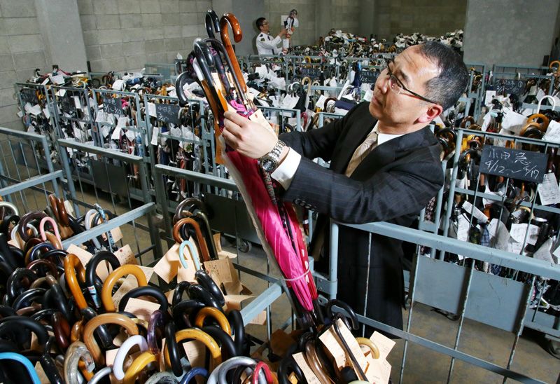Según el orgamismo, en 2016 llegaron más de 380.000 paraguas, entre otros objetos, de los que menos del 1 % fueron devueltos al propietario. Ōkubo piensa que hay muchas personas que no acuden a objetos perdidos sopesando el bajo precio del paraguas y la molestia de rellenar el formulario de objetos perdidos. (Jiji)
