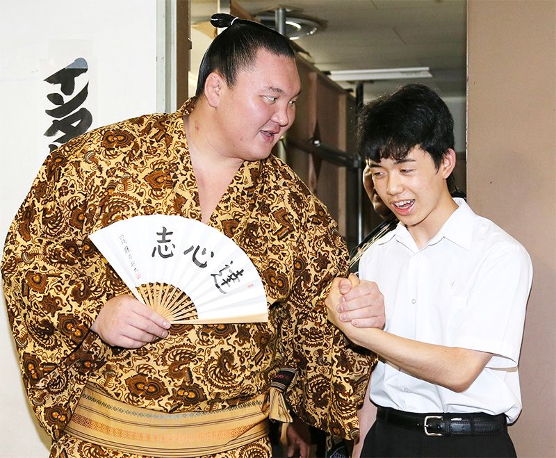 El genio del shōgi Fujii Sōta y el campeón de sumō Hakuhō se reúnen (Japón en imágenes)