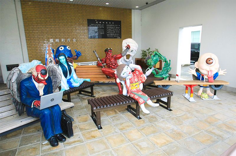 La ciudad de Fukusaki, situada en la prefectura de Hyōgo, presentó siete bancos distintos en los que uno se puede sentar junto a terroríficas figuras de espectros y duendes japoneses como parte de su estrategia para atraer el turismo a través de los yōkai. Figuras como la del hitotsume kozō, un trasgo que muestra un solo ojo muy realista, podrían atraer a muchos visitantes y animarlos a tomar fotografías impactantes para Instagram.