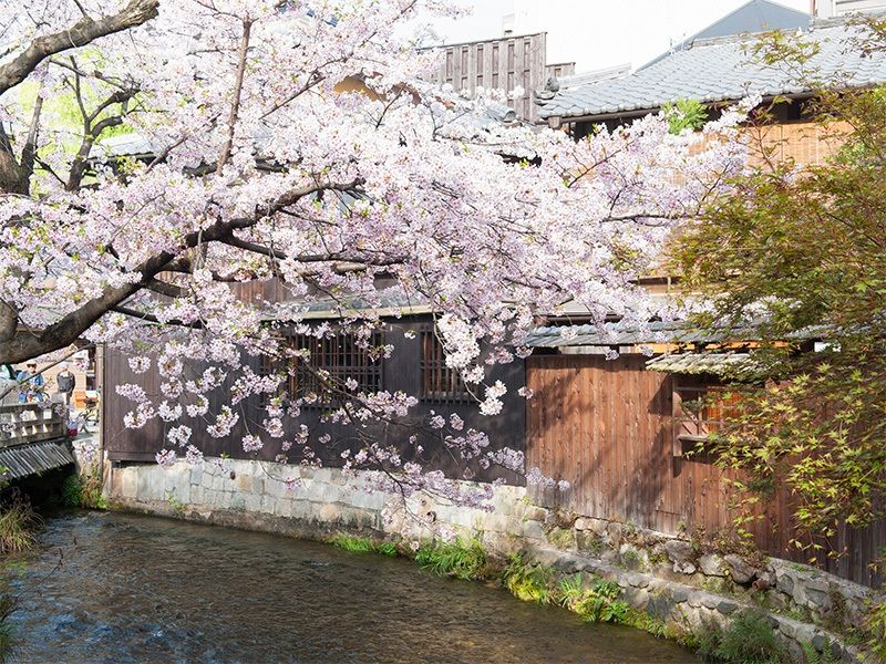 Los cerezos florecen a lo largo de un pequeño arroyo conectado con el río Shirakawa.
